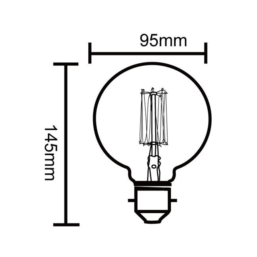 CLA Lighting Carbon Filament Incandescent Globe G95 25W 220-240V E27 Clear 2800K Warm White 1500 hrs 95x145mm