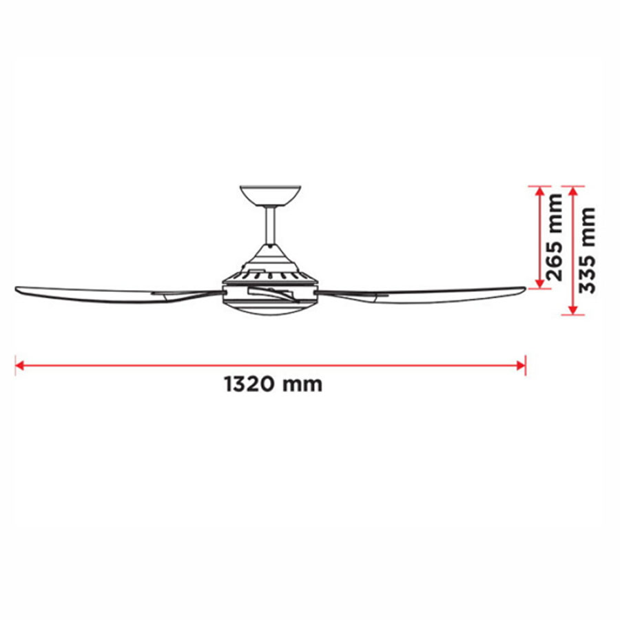 Deka Ceiling Sweep Fan 4 Blade 1320mm 3 Speed Wall Controller ABS Plastic White Ceiling