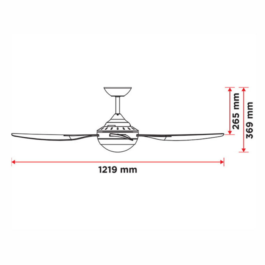 Deka Sweep Fan with 18Watt CCT LED Light Russell 4 Blade 1220mm 3 Speed Wall Controller ABS Plastic White
